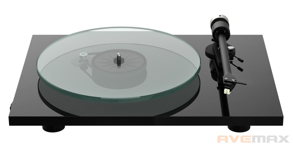 9" hliníkové rameno má efektivní délku 230 mm, ložisko s minimálním třením, viskózně tlumený zvedáček a pružinový antiskating ovládaný na základně ramene - toto zajímavé řešení je u gramofonu Pro-Ject využito poprvé. Rameno je jednodílné s ½" uchycením a dodávanou přenosku Sumiko Rainier je možné tedy kdykoliv v budoucnu vyměnit. Dominantním estetickým prvkem gramofonu je 10 mm silný talíř z čirého skla. Díky své hmotnosti 1,7 kg zaručuje minimální kolísání otáček. Talíř je poháněný krátkým plochým hnacím řemínkem přes subtalíř na ultra přesném (0,001 mm) hlavním ložisku s osou z kalené oceli.